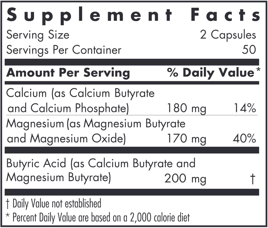 Magnesium (as magnesium butyrate and magnesium oxide): 170 mg | 40%