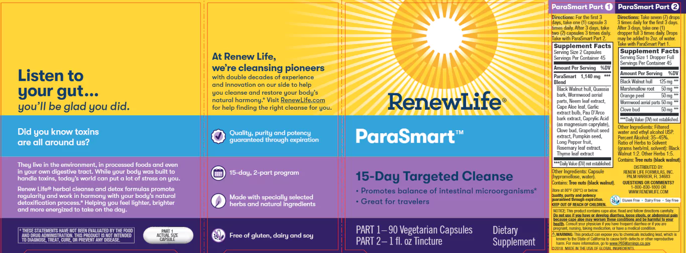 Renew Life® ParaSmart™ is a targeted 2-part cleansing program. It’s made with specially selected herbs and natural ingredients to promote the balance of intestinal microorganisms.* Helping you feel lighter, brighter and more energized.