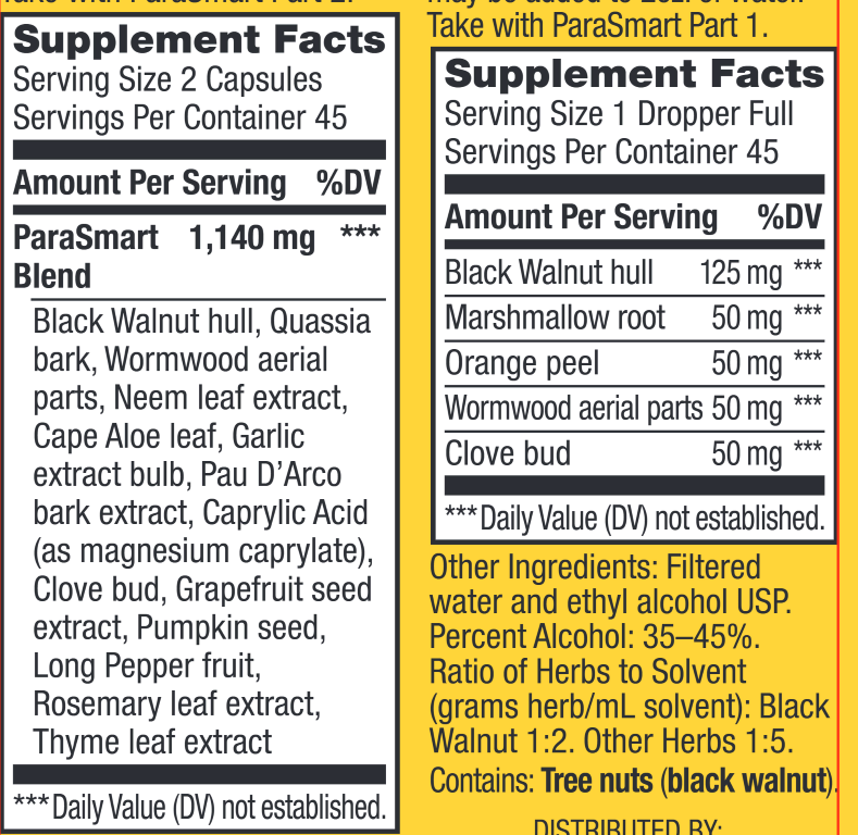 Directions: For the first 3 days, take 1 capsule 3 times daily. After 3 days, take 2 capsules 3 times daily. Take with ParaSmart Part 2.